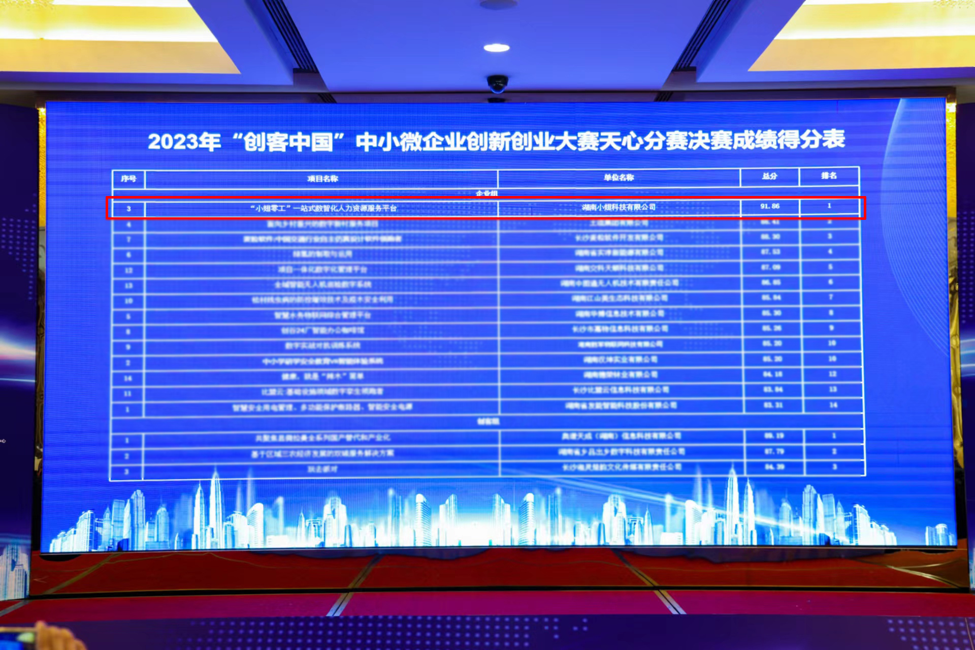 8月10日,在2023年“創(chuàng)客中國”中小微企業(yè)創(chuàng)新創(chuàng)業(yè)大賽(天心賽區(qū))總決賽上,我公司的“小翅零工一站式數智化人力資源服務平臺”,在企業(yè)組15個優(yōu)秀項目中勇得桂冠。