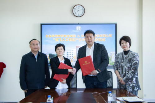 4月22日,長春早期教育職業學院與科大訊飛共建“訊飛人工智能產業學院”簽約揭牌儀式在長春早期教育職業學院一號樓會議室隆重舉行。雙方代表共同簽署合作協議,并為產業學院揭牌,標志著雙方在人工智能領域深化產教融合、協同育人的深度合作正式啟航。