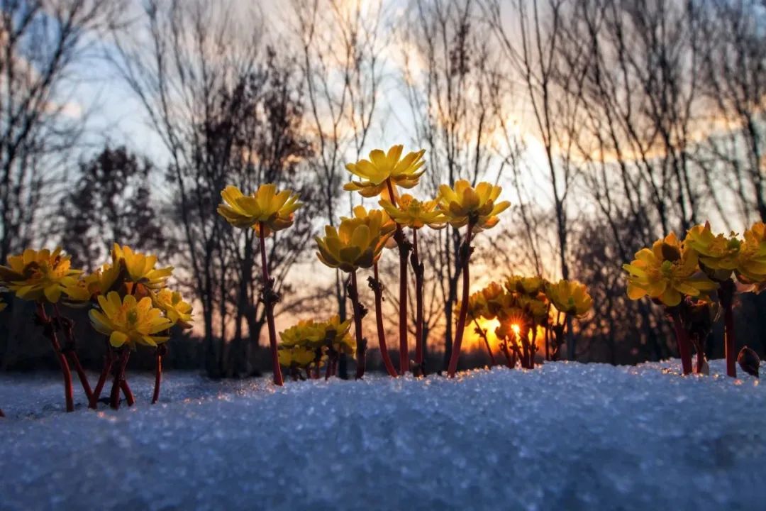 它是一種小巧的草本植物,植根于肥沃的黑土地,在凍土中發芽、生長,吸吮著融雪中的冰水。白而漸紅的莖,紫里透綠的葉,托著閃閃發亮的黃緞子般的花瓣兒和纖細的花蕊。冬春交替的季節里,它是第一道靚麗的風景線,給期盼春天的人們帶來希望。